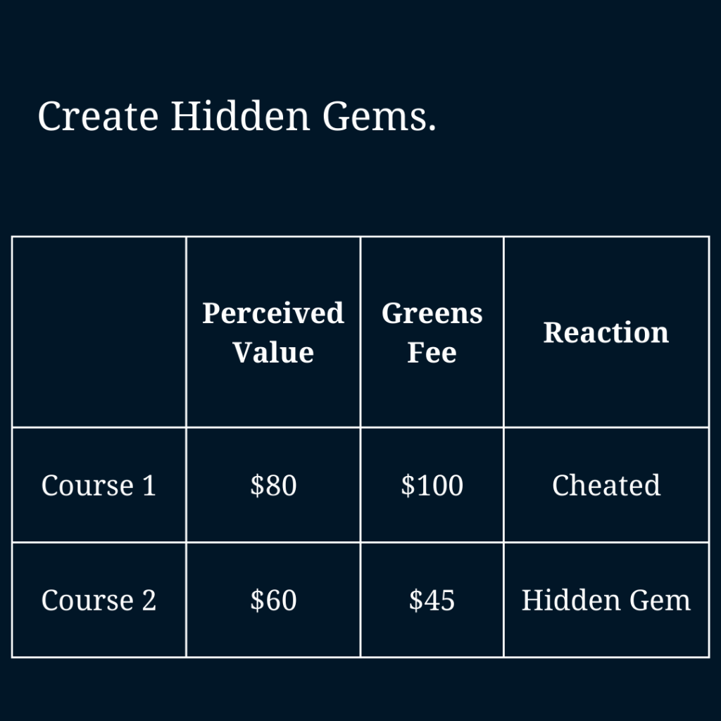 - It does not matter if you are a $40 course or a $120 course. Your perceived value MUST be greater than what your golfers are spending.