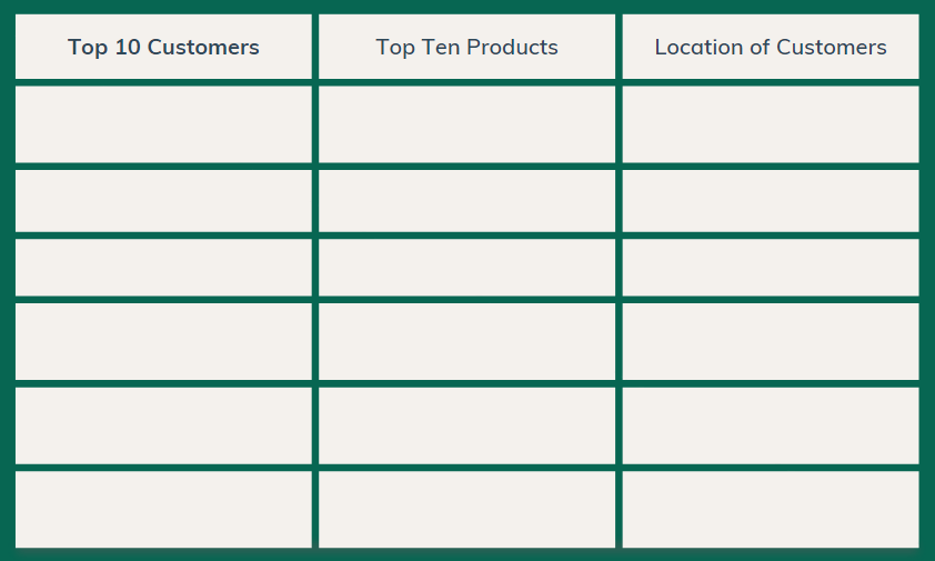 Step 1: Write down those customers, products, and numbers from Part 1